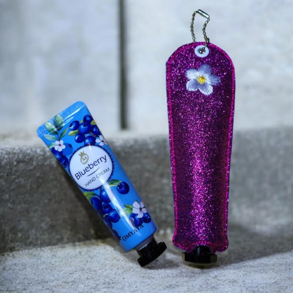 Cute flower case for holding your travel sized hand cream, This is holding a 30g or 1oz tube of hand cream with a screw cap